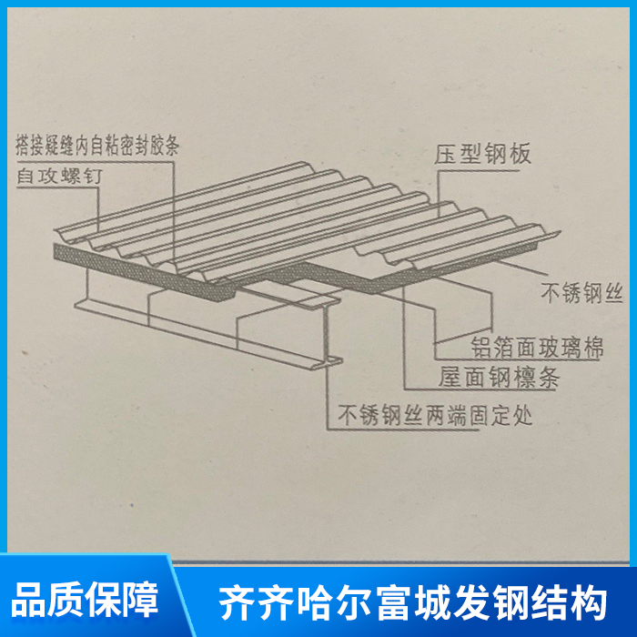 掛網式玻璃棉夾芯板屋面板是可直接承受屋面荷載的板。屋面板位于房屋的屋頂,一般使用鋁鎂錳或合金等金屬制成。屋面板在房屋頂層的山墻斜梁上組裝后,翼板則搭接遮蓋使多個單體箱型屋面板不出現見光的垂直縫,形成整體性良好的坡屋頂。